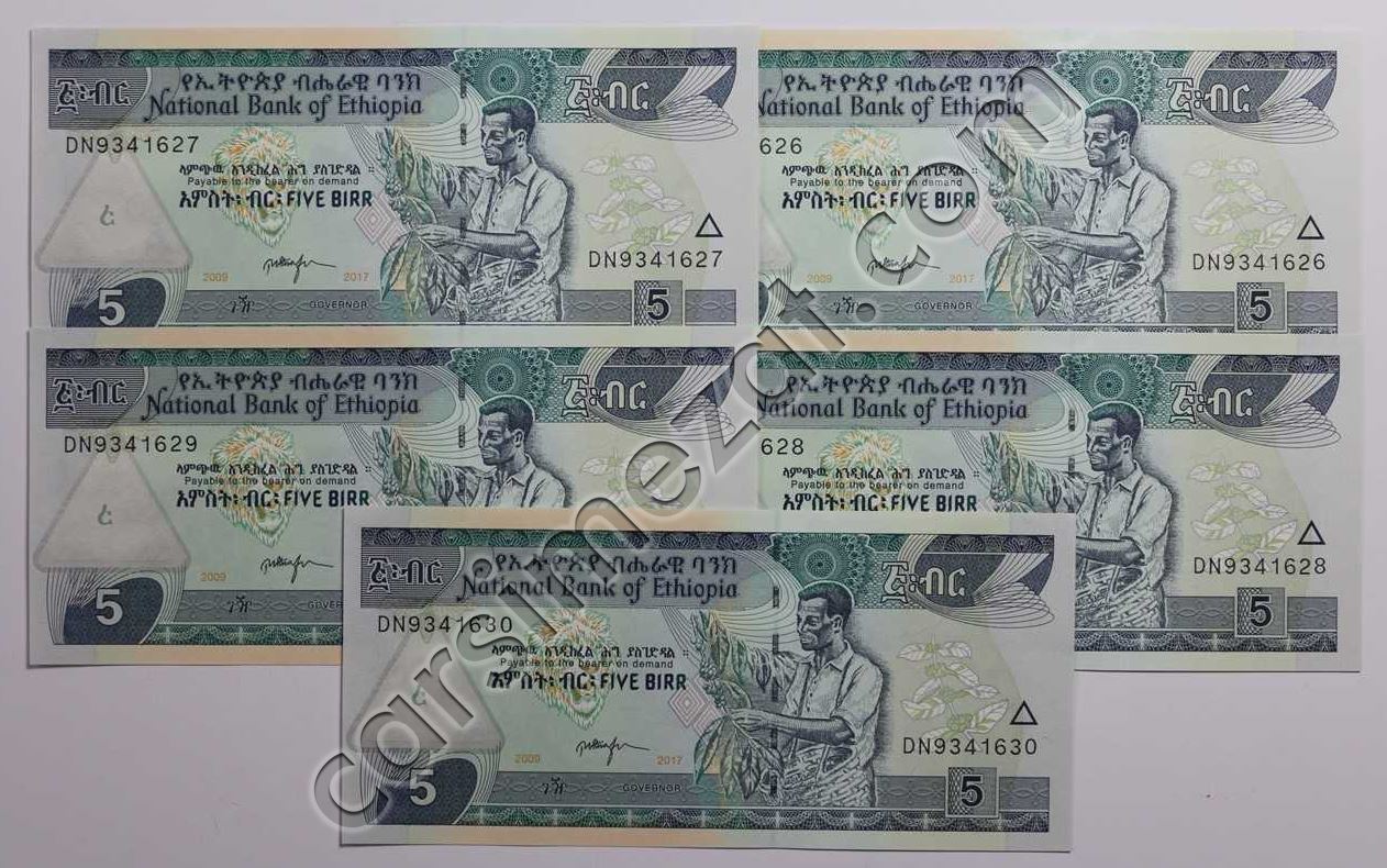 ETİHOPYA 2 BIRR 2017 SERİ TAKİP 5 Lİ LOT ÇİL