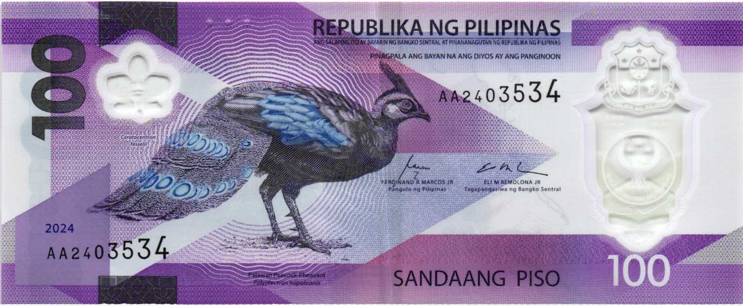 FİLİPİNLER 100 PESOS POLİMER 2024 ÇİL