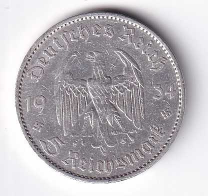 GÜMÜŞ 1934 ALMANYA 5 MARK NAZİ GAMALI HAÇLI ÇT