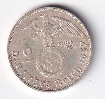 GÜMÜŞ 1937 ALMANYA 2 MARK NAZİ GAMALI HAÇLI ÇÇT