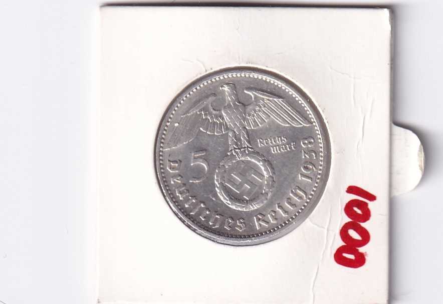 GÜMÜŞ 1938 ALMANYA 5 MARK NAZİ GAMALI HAÇLI ÇÇT+