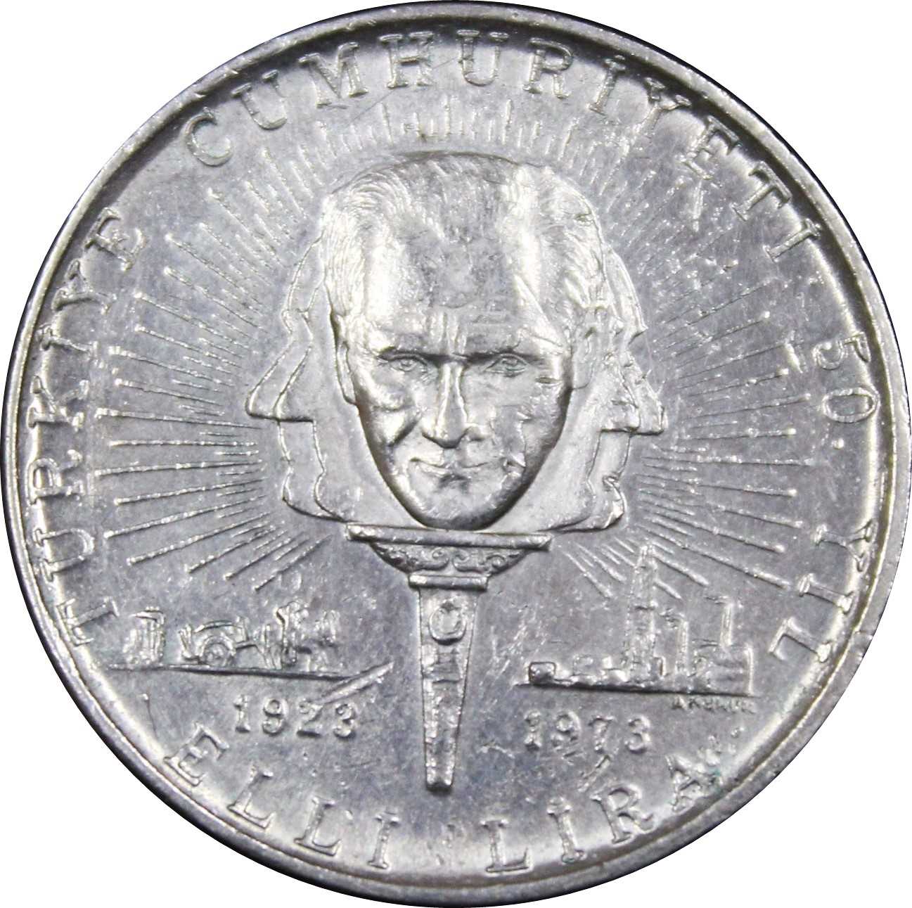GÜMÜŞ 1973 50 LİRA CUMHURİYETİN 50. YILI HATIRA ÇİL ALTI