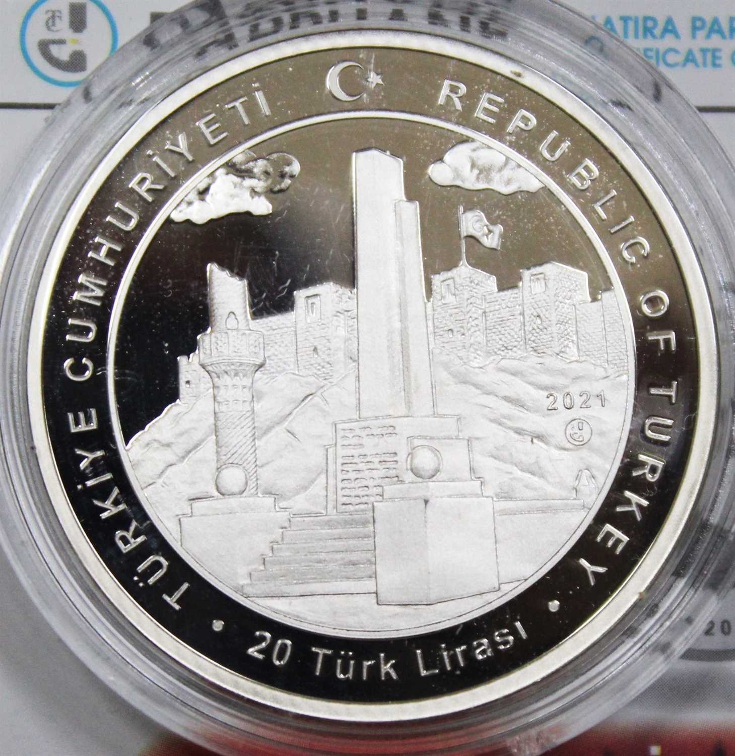 GÜMÜŞ 2021 20 TÜRK LİRASI GAZİANTEP GAZİLİK UNVANI HATIRASI SERTİFİKALI ÇİL