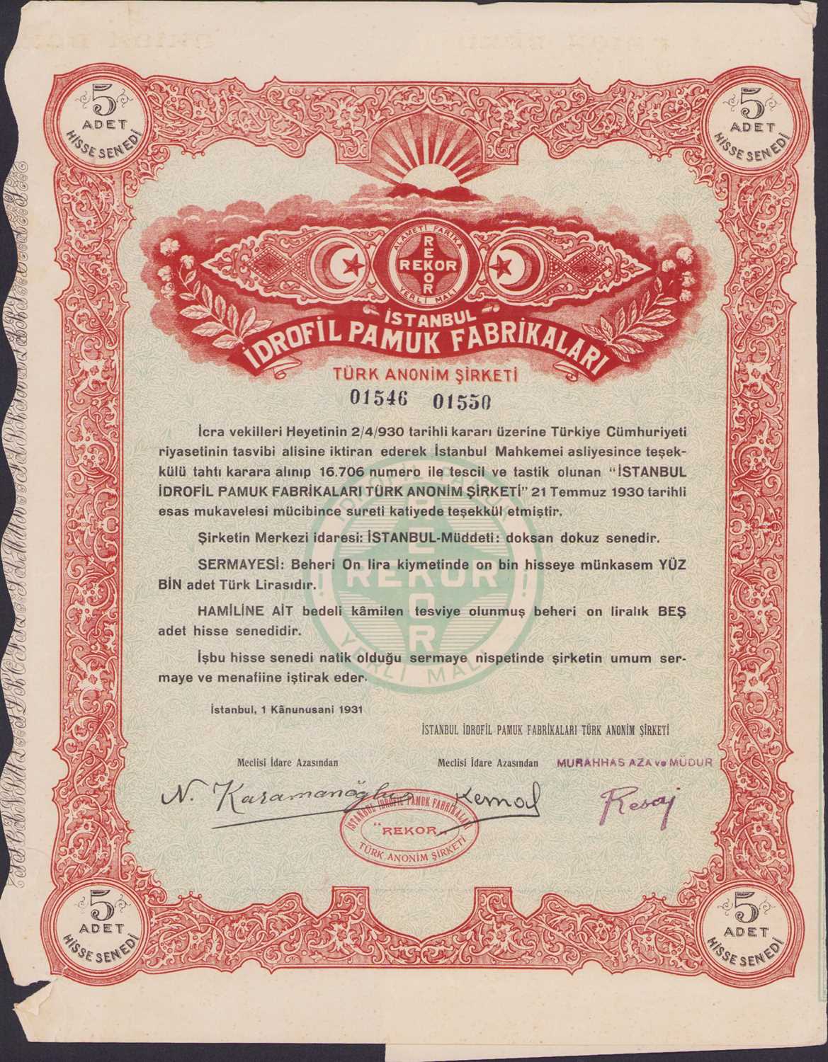 HİSSE SENEDİ (YIRTIK VE DEFORMELER VAR)