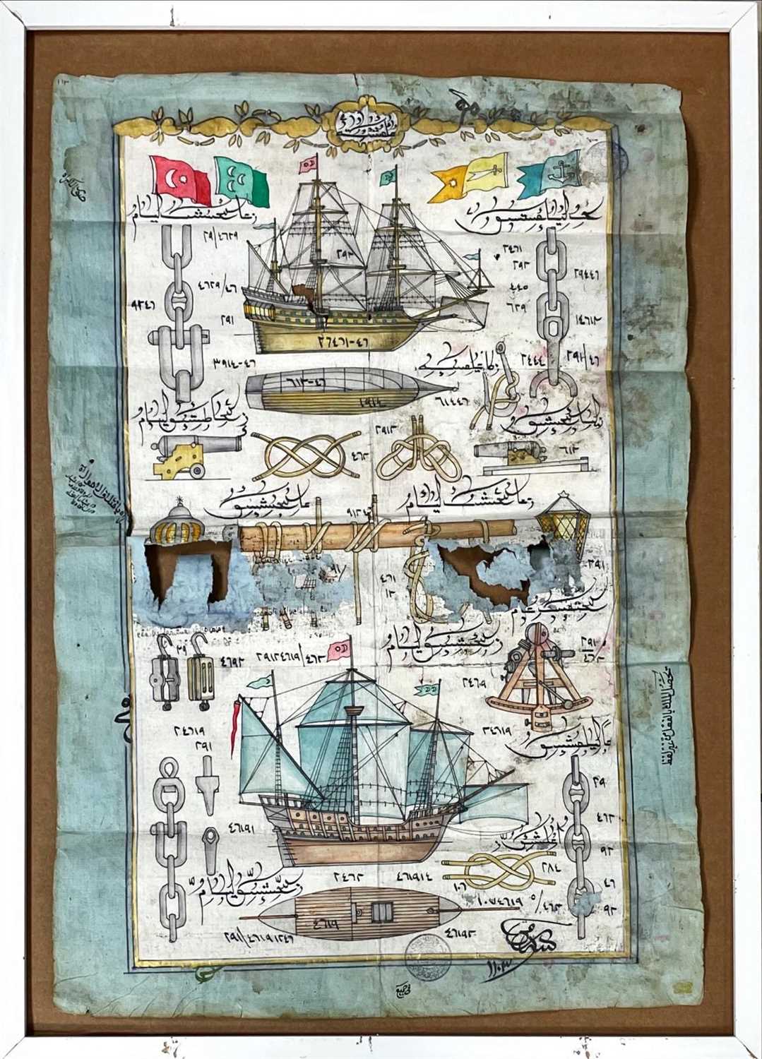 imzalı mühürlü Osmanlı devletinin denizcilik ile ilgili minyatürü ebat 72x52 çerçeveli (not: ortadaki Defolu haliyle)