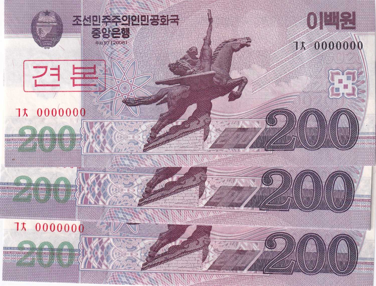 KUZEY KORE 200 WON SPESMEN 2008 10 LU SERİ TAKİPLİ ÇİL