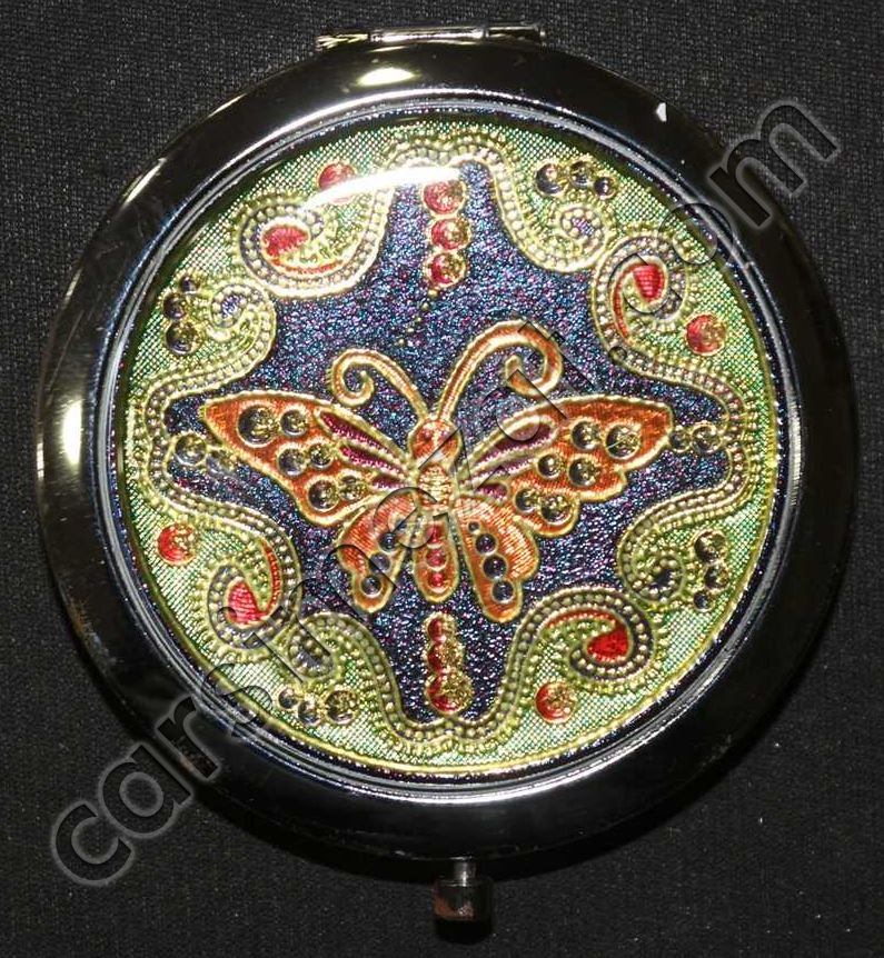 Mini Makyaj Kompakt Cep Aynası Çiçek Kelebek Metal Taşınabili