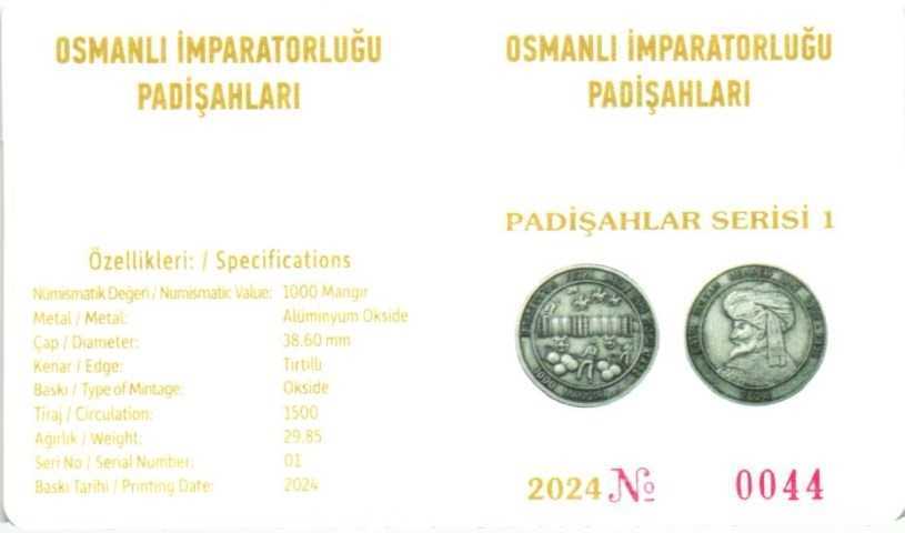 OSMANLI İMPARATORLUĞU PADİŞAHLAR SERİSİ 1 - FATİH SULTAN MEHMED, ŞAHİ TOPU 1.000 MANGIR ALÜMİNYUM OKSİDE SERTİFİKALI ÇİL