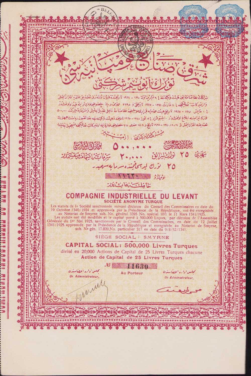 OSMANLI İZMİR ŞARK HİSSE SENEDİ