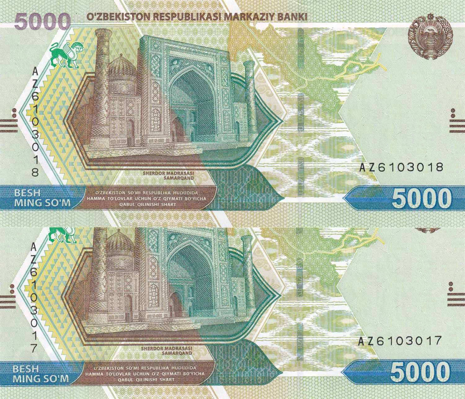 ÖZBEKİSTAN 5.000 SOM SERİ TAKİPLİ ÇİL