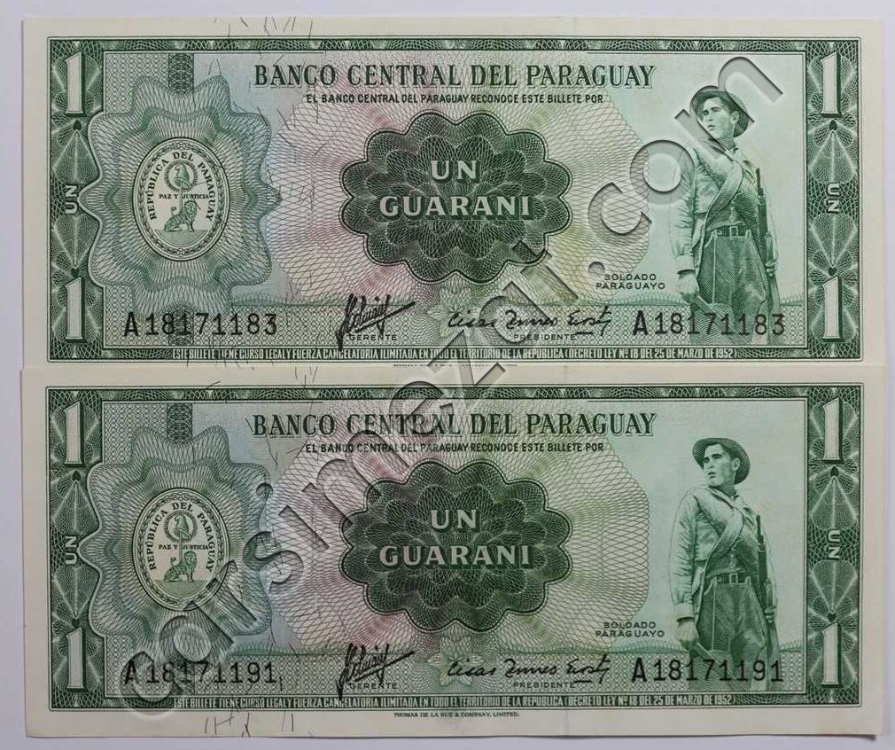 PARAGUAY 1 GUARANI 1952 SERİ TAKİP 2 Lİ LOT ÇİL