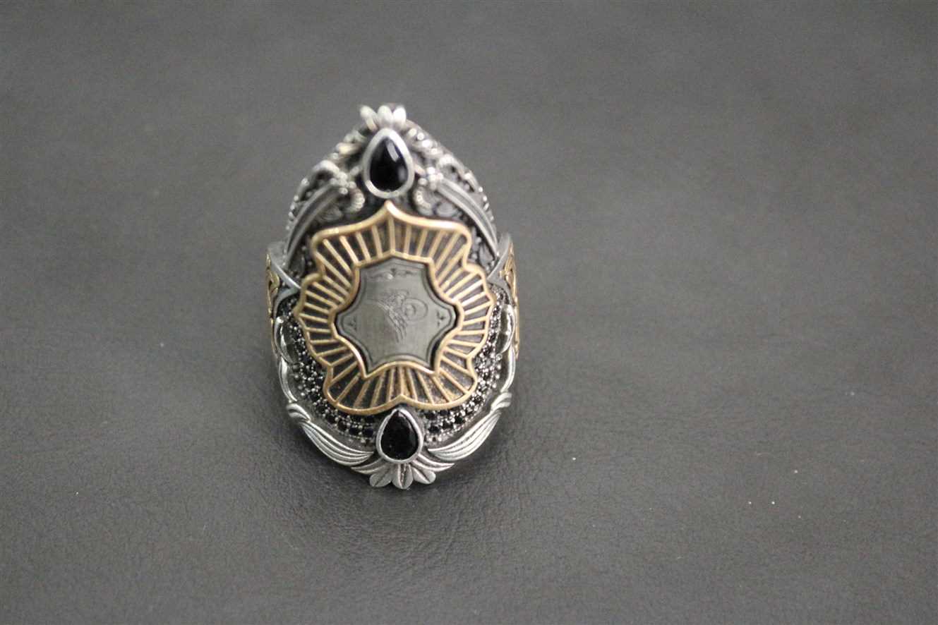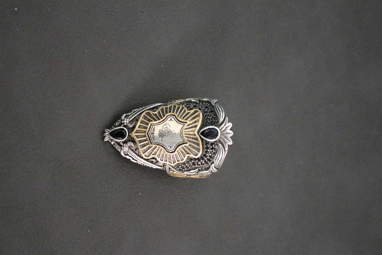 SİYAH ZİRKON TAŞ MIHLAMALI OSMANLI TUĞRALI OKÇU(ZİNGİR) 925 AYAR 19.63