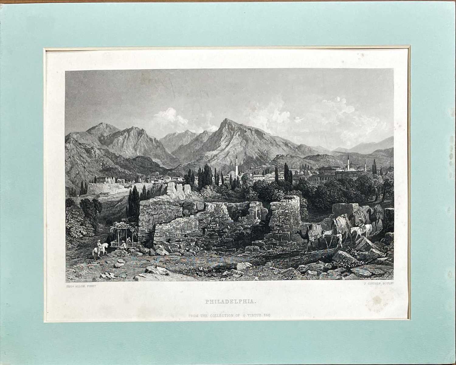 Thomas Allom PHİLADELPHIA Manisa Alaşehir gravürü Büyük Boy (Nadir)ebat 35x28 paspartulu