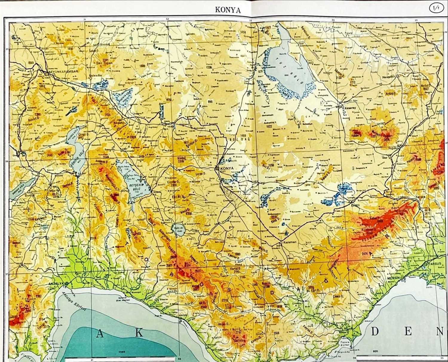 Türkiye Atlası 1961 tarihli maarif basımevi Konya haritası ebat 68x48