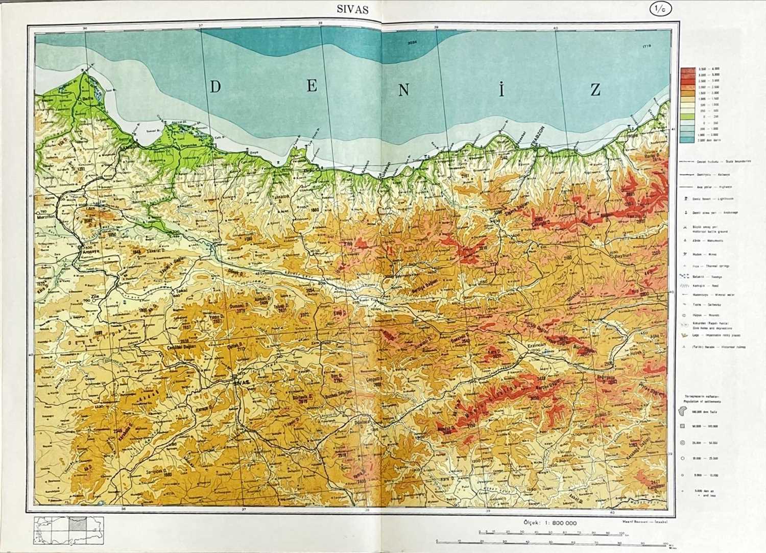 Türkiye Atlası 1961 tarihli maarif basımevi Sivas haritası ebat 68x48