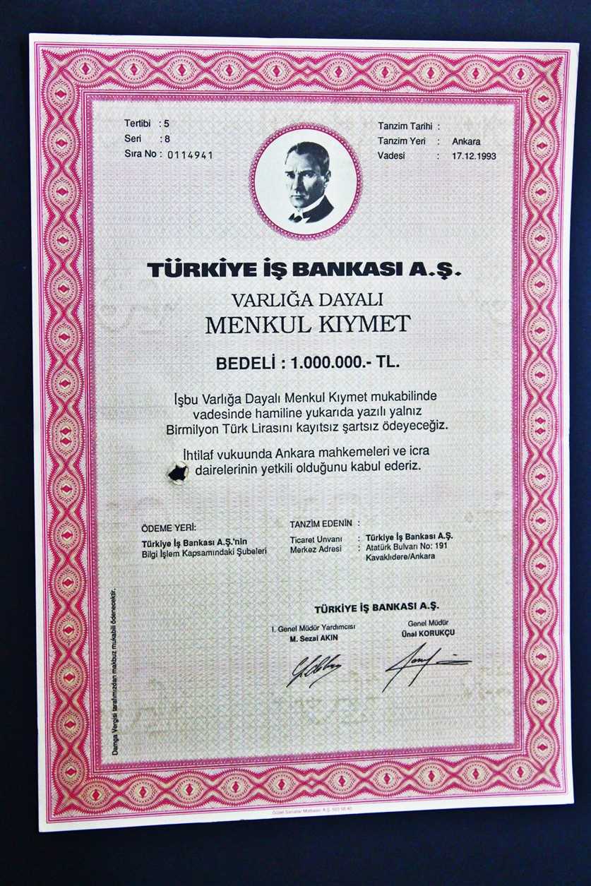 TÜRKİYE İŞ BANKASI BEDELİ : 1.000.000 TL HİSSE SENEDİ