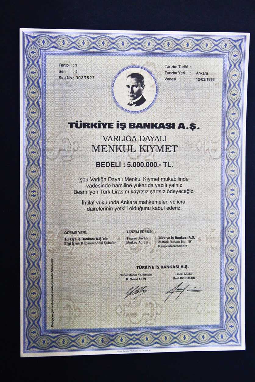 TÜRKİYE İŞ BANKASI BEDELİ : 5.000.000 TL HİSSE SENEDİ