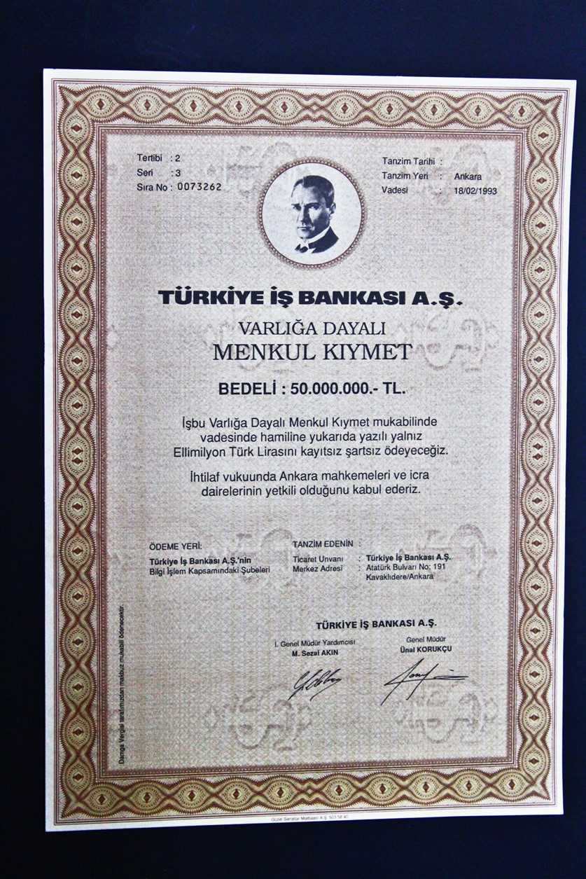 TÜRKİYE İŞ BANKASI BEDELİ : 50.000.000 TL HİSSE SENEDİ