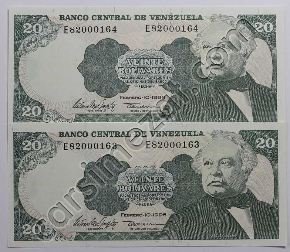 VENEZUELA 20 BOLIVARES 1998 SERİ TAKİP 2 Lİ LOT ÇİL