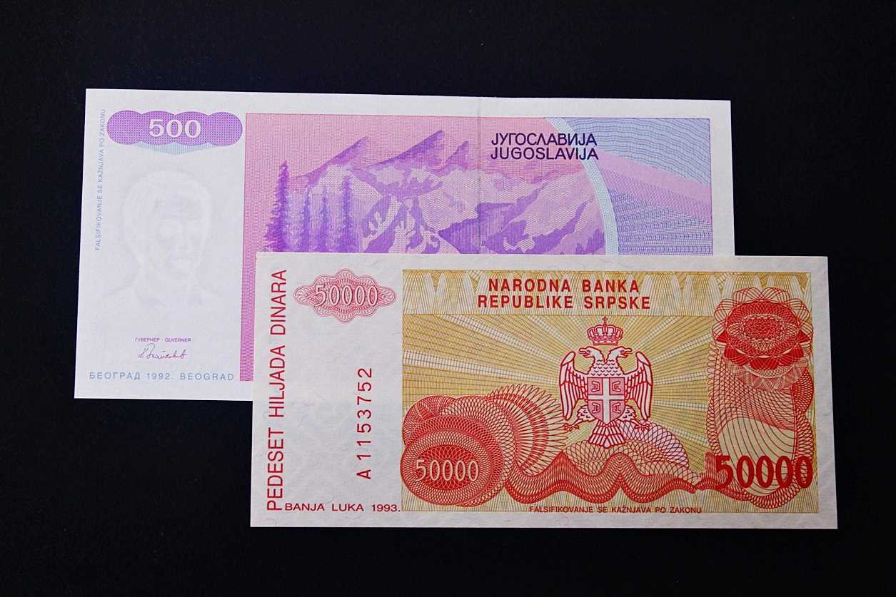 YUGOSLAVYA 500/50.000 DİNAR 1992/1993 2 Lİ LOT ÇİL