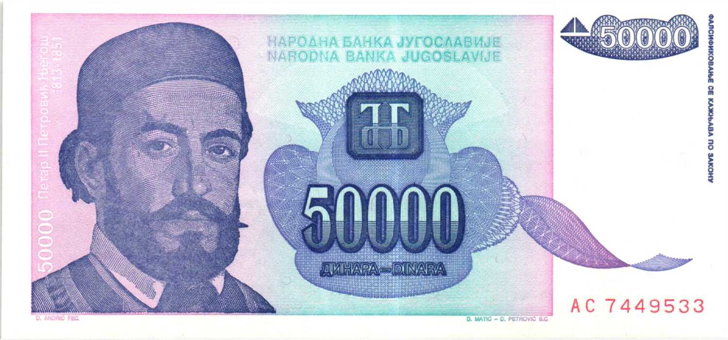 YUGOSLAVYA 50.000 DİNAR 1993 ÇİL