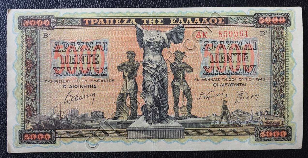 YUNANİSTAN 5.000 DRAHMİ 1942 ÇİL-